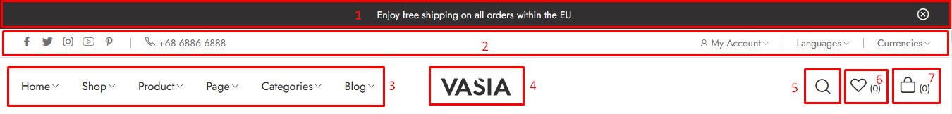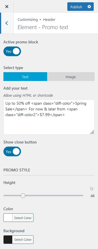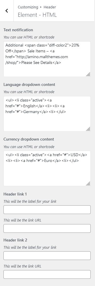 - Go to Appearance > Customize > Header > Element - HTML > Text notification