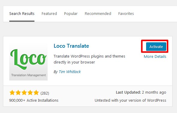 Locate Loco Translate in the search results and click on Install Now