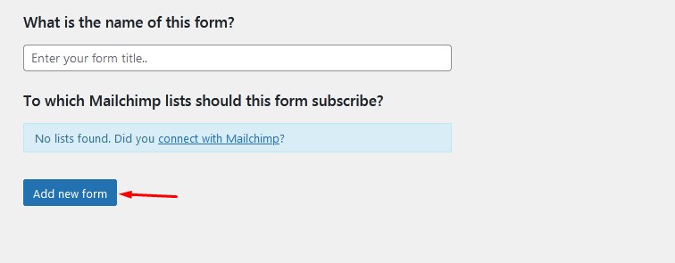 - Go to MC4WP > Form > Add new form .