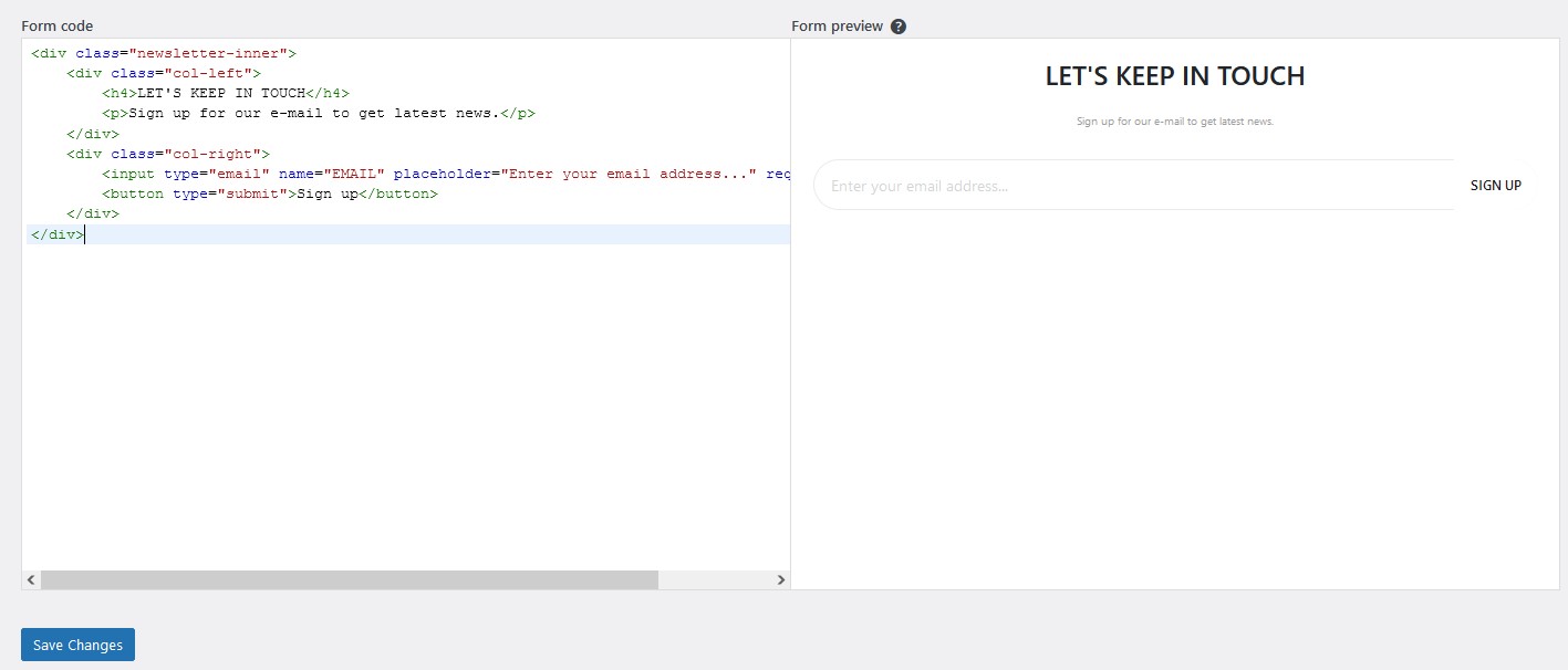 Show Mailchimp form like demo: