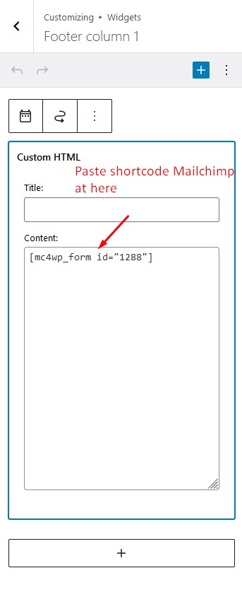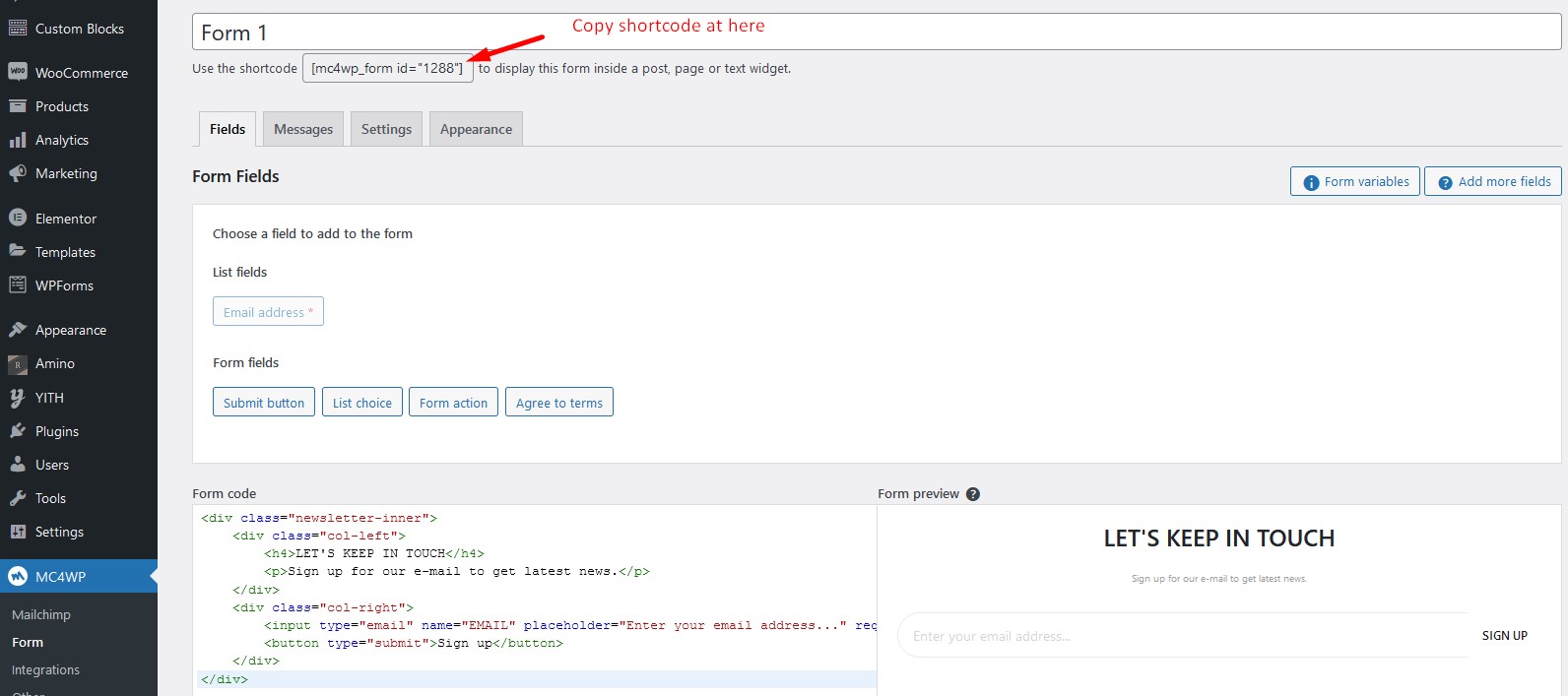 - At Form code, add shortcode :
