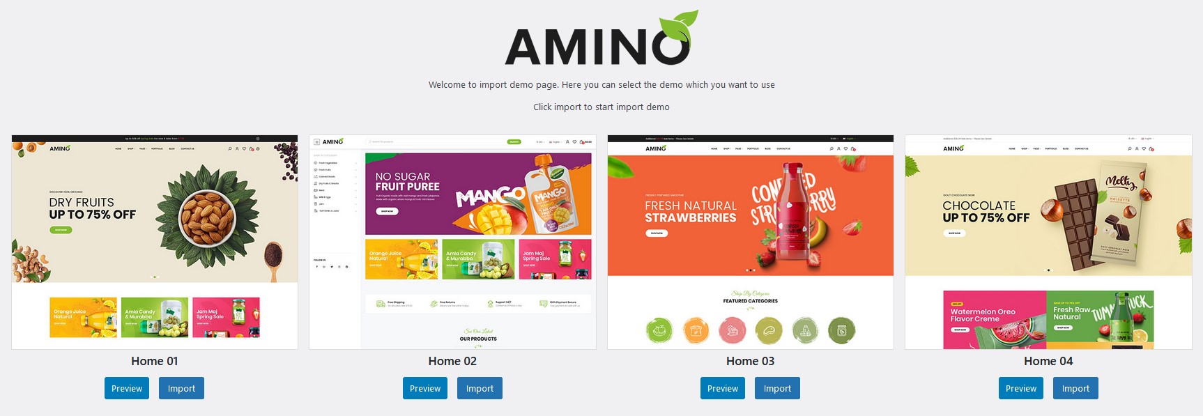 Click Import to choose demo you want to import