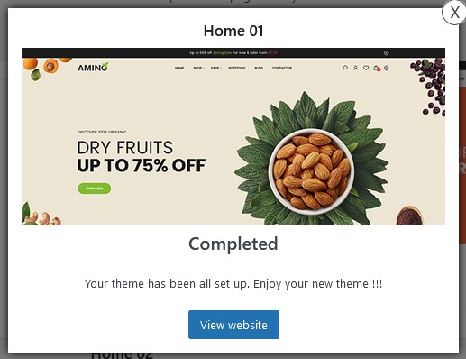 Finish importing >> click View Website to view demo data.