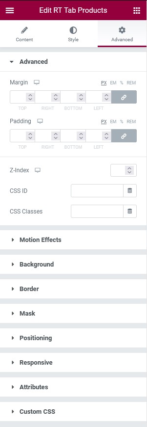 - Tab Advanced: setting other pages.