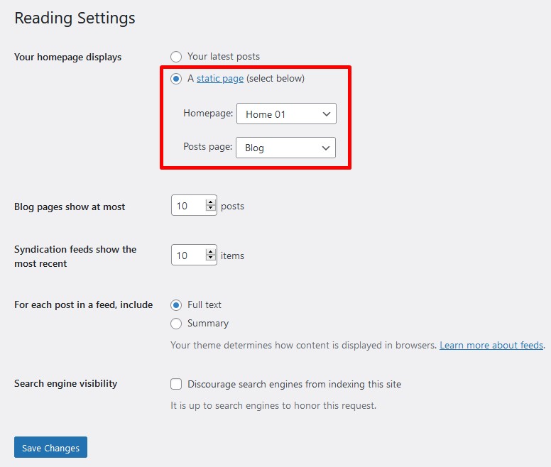 3. Set a page as home page and posts page (blogs)