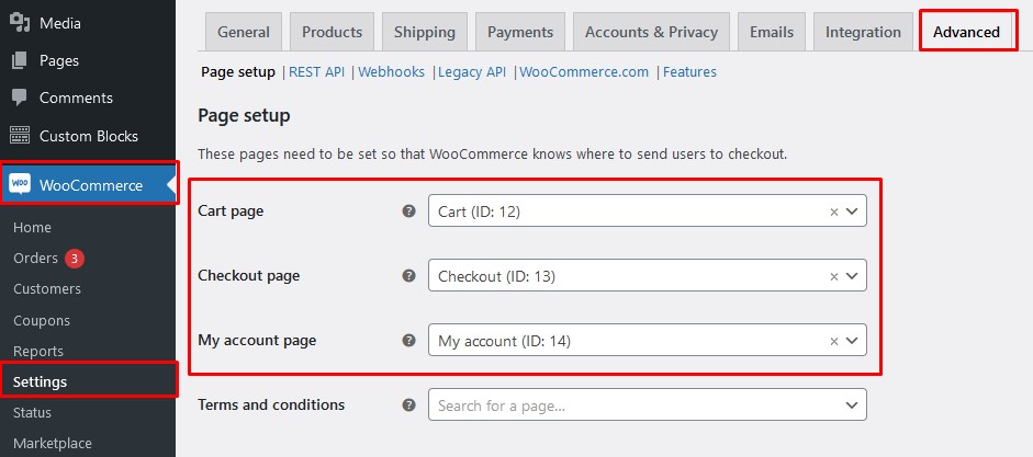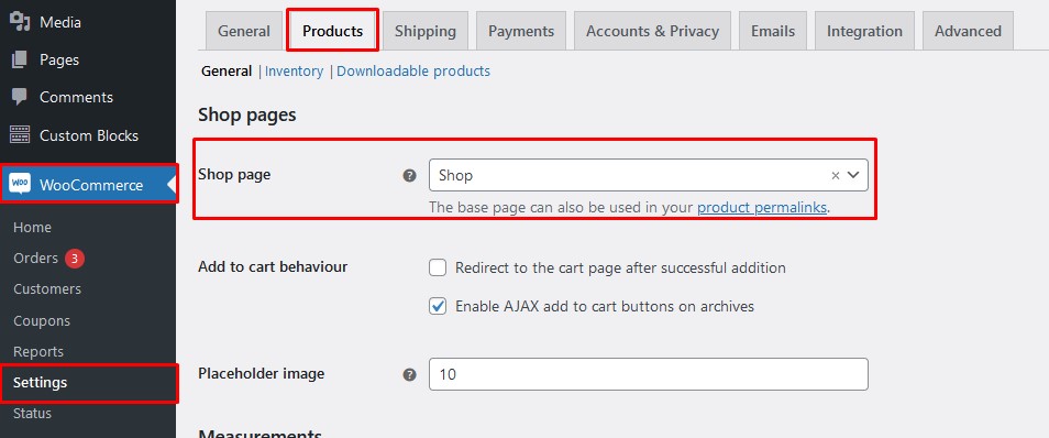 Setting WooCommerce Pages