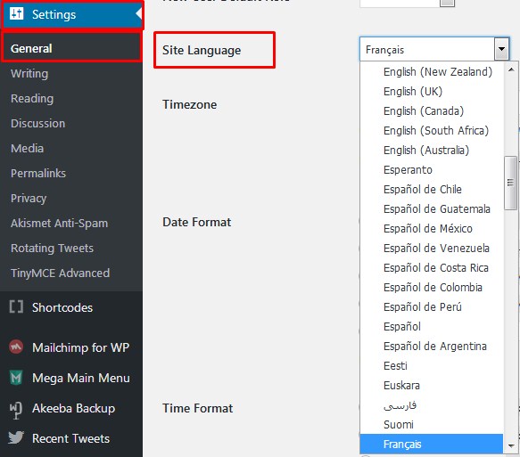 Dashboard -> Settings -> General. Changing this will set a new default language for all site visitors. Example, we're going to set the language to French at Available : Choose Français