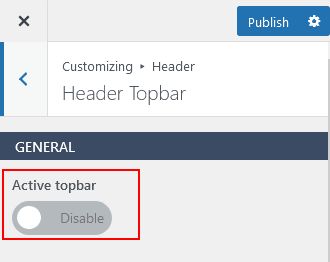 Go to Appearance > Customize > Header > Header Topbar > Enable Topbar to enable/disable your topbar.